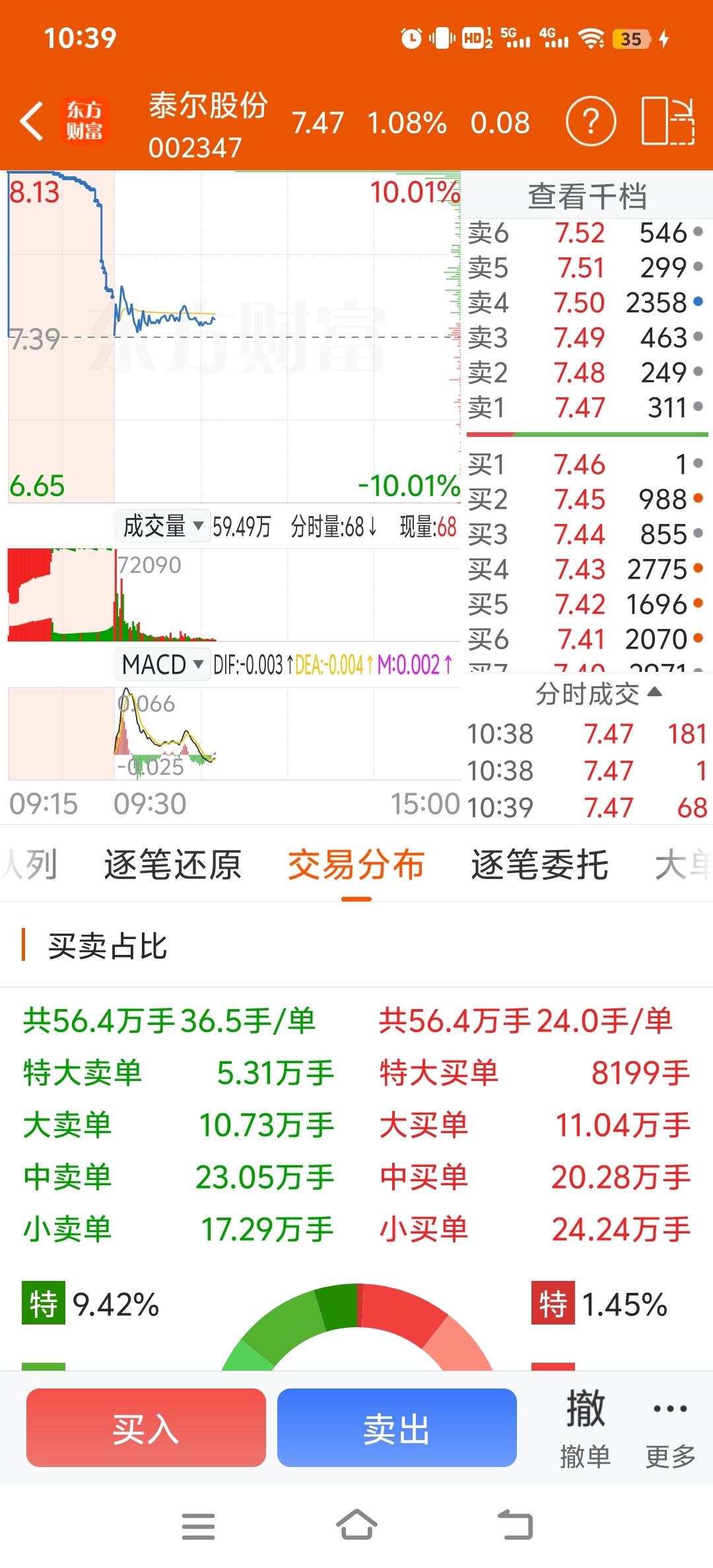 $泰尔股份(SZ002347)$ 昨儿的三亿封单呢!!!