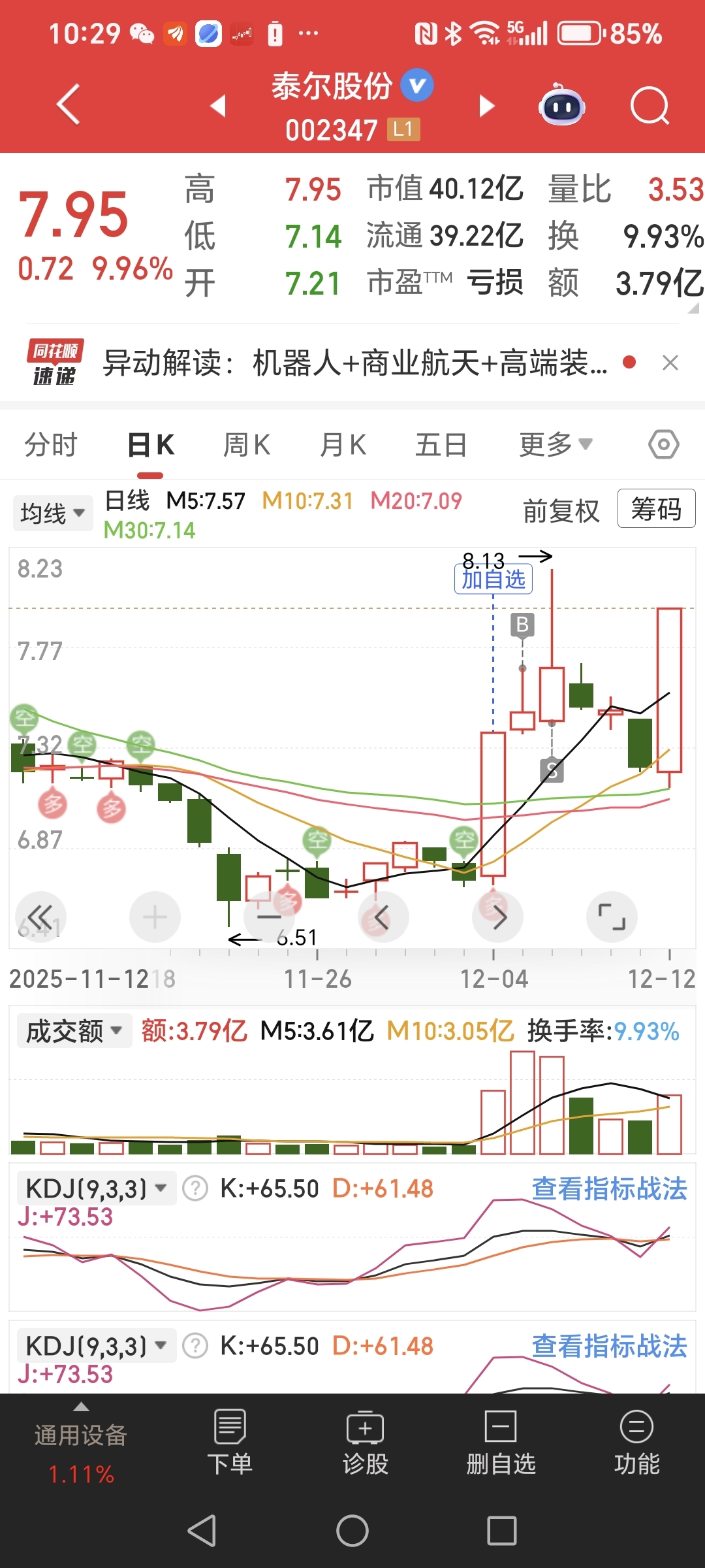 $泰尔股份(SZ002347)$ 终于博云见天日,死扛下来了!这个庄很坏,天天跌没有一定定力真会被甩下车!