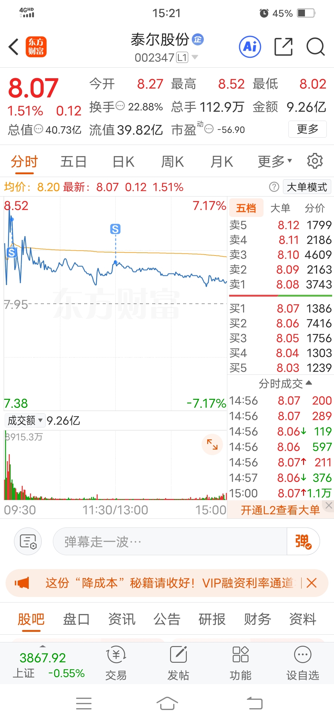 $泰尔股份(SZ002347)$ 走了,7.6等你