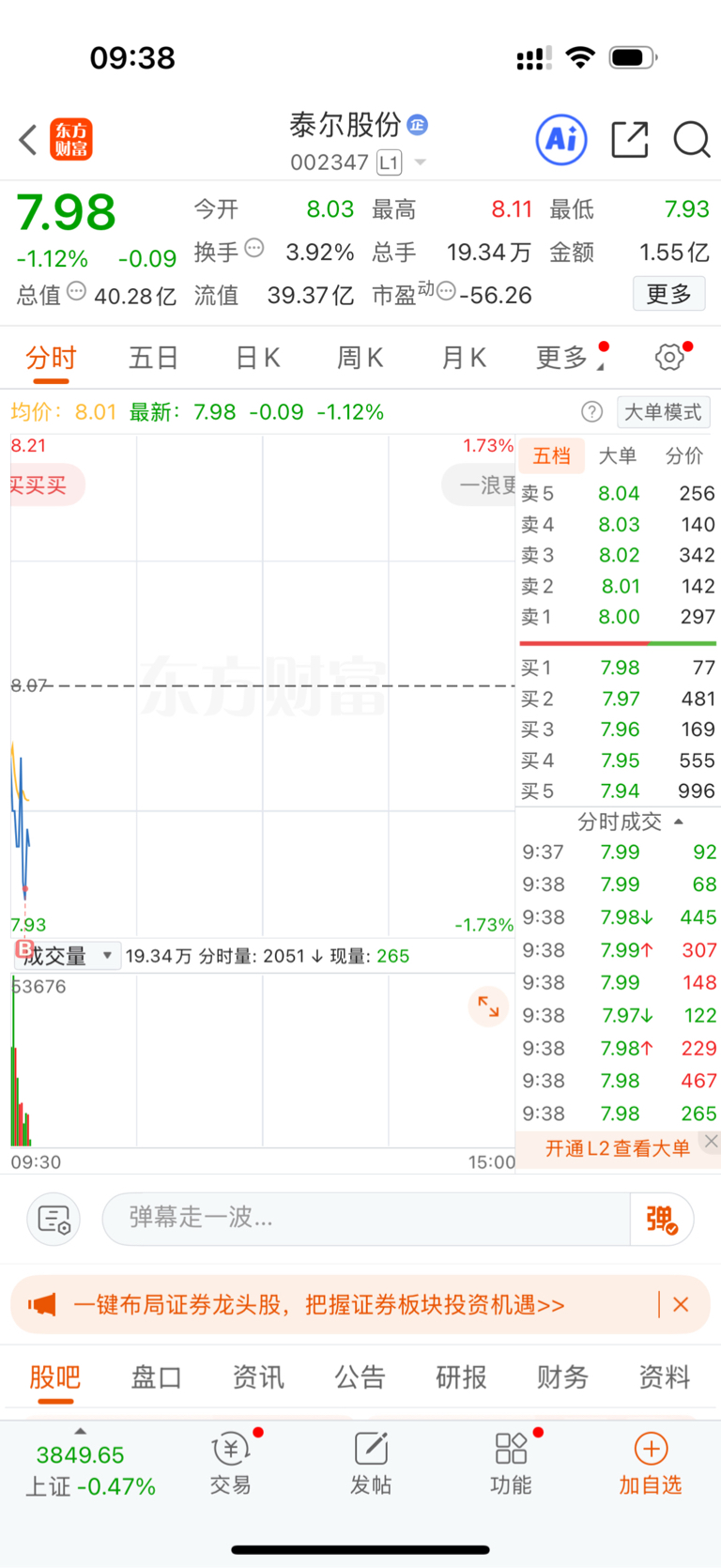 7.98水下低吸介入$泰尔股份(SZ002347)$