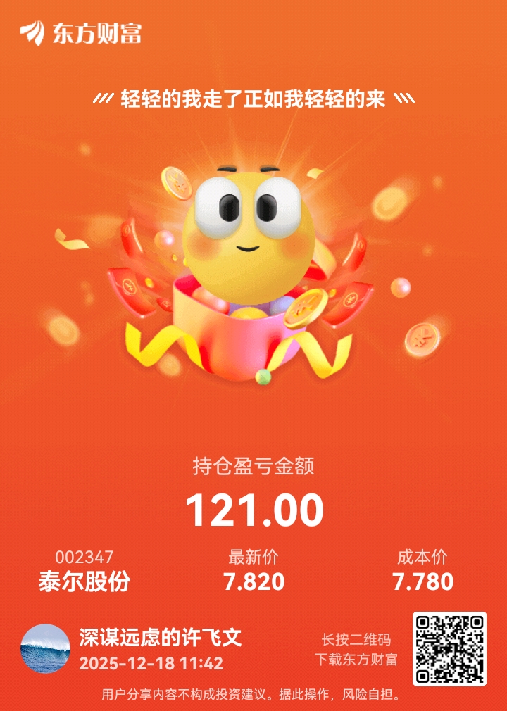 $泰尔股份(SZ002347)$ 昨天794进去的。今天已经开始盈利。看60分钟,下午应该没问题。