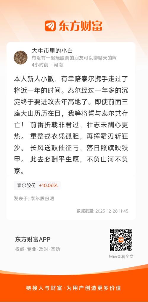 本人新人小散,有幸陪泰尔携手走过了将近一年的时间。泰尔经过一年多的沉淀终于要进攻去年高地了。即使前面三座大山历历在目,我等将誓与泰尔共存亡! 前番折戟非君过,壮志未酬心更热。 重整戎衣凭孤胆,再挥霜刃斩狂沙。 长风送鼓催征马,落日照旗映铁甲。 此去必酬平生愿,不负山河不负家。