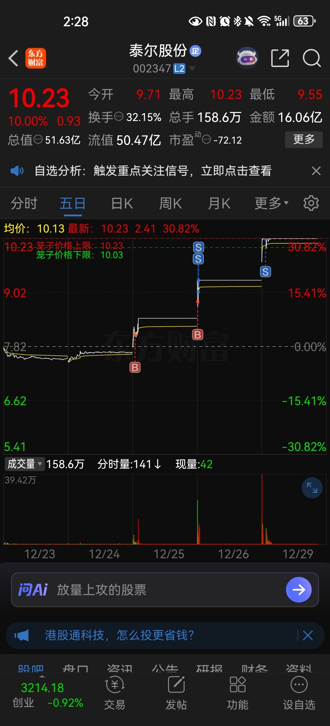 $泰尔股份(SZ002347)$ 估计又卖飞了