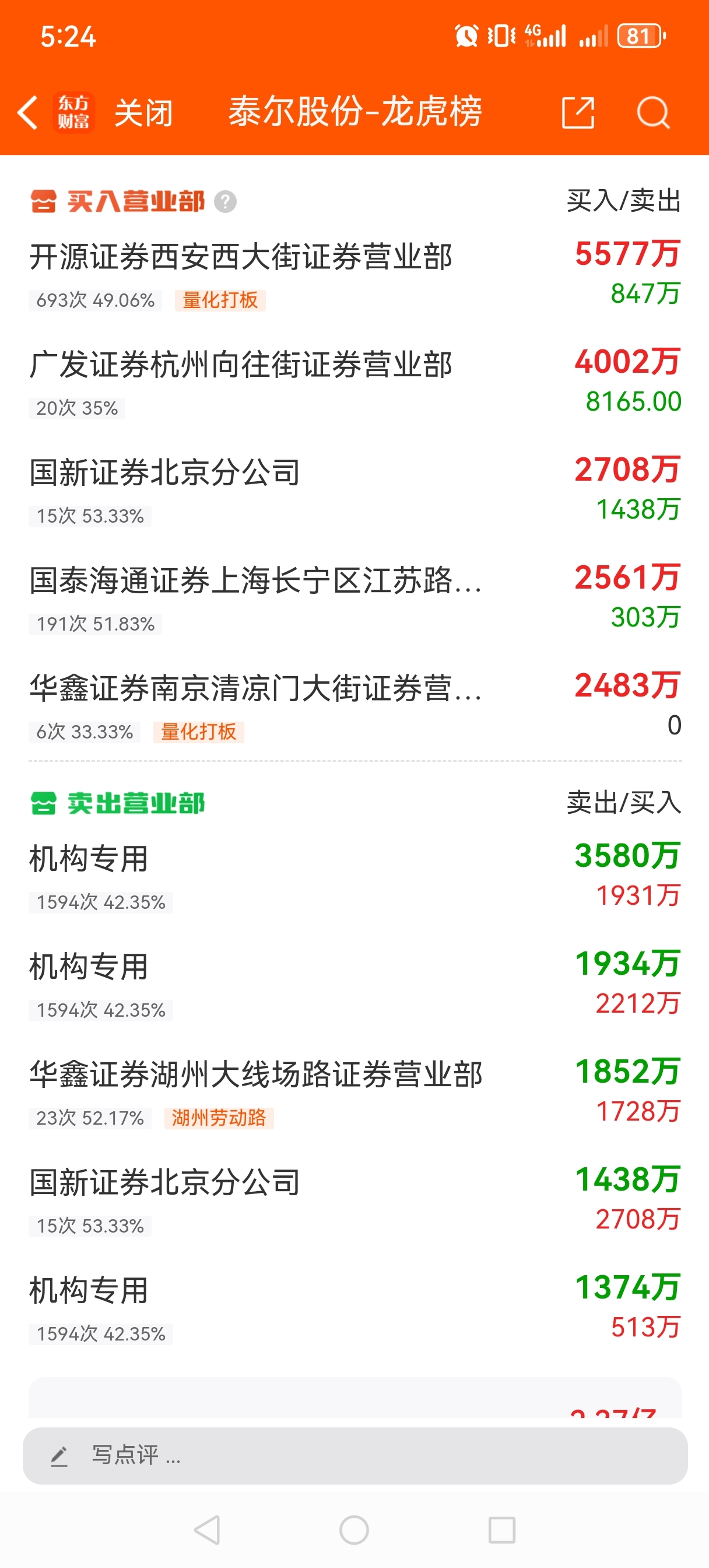 $泰尔股份(SZ002347)$ 两个量化打板在里面,明天冲高抓紧下车去天奇股份吧