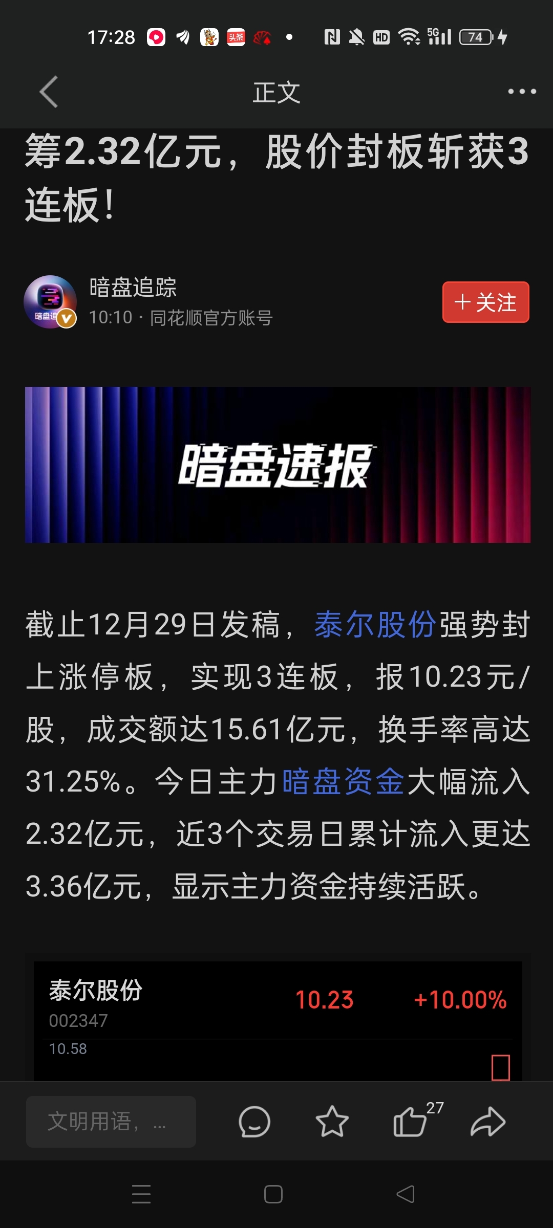 $泰尔股份(SZ002347)$ 5板告别2025辞旧迎新,假期回来再来第6板迎接2026开启新篇章,66大顺,大吉大利,这个跨年换手龙卡的数字泰吉利了