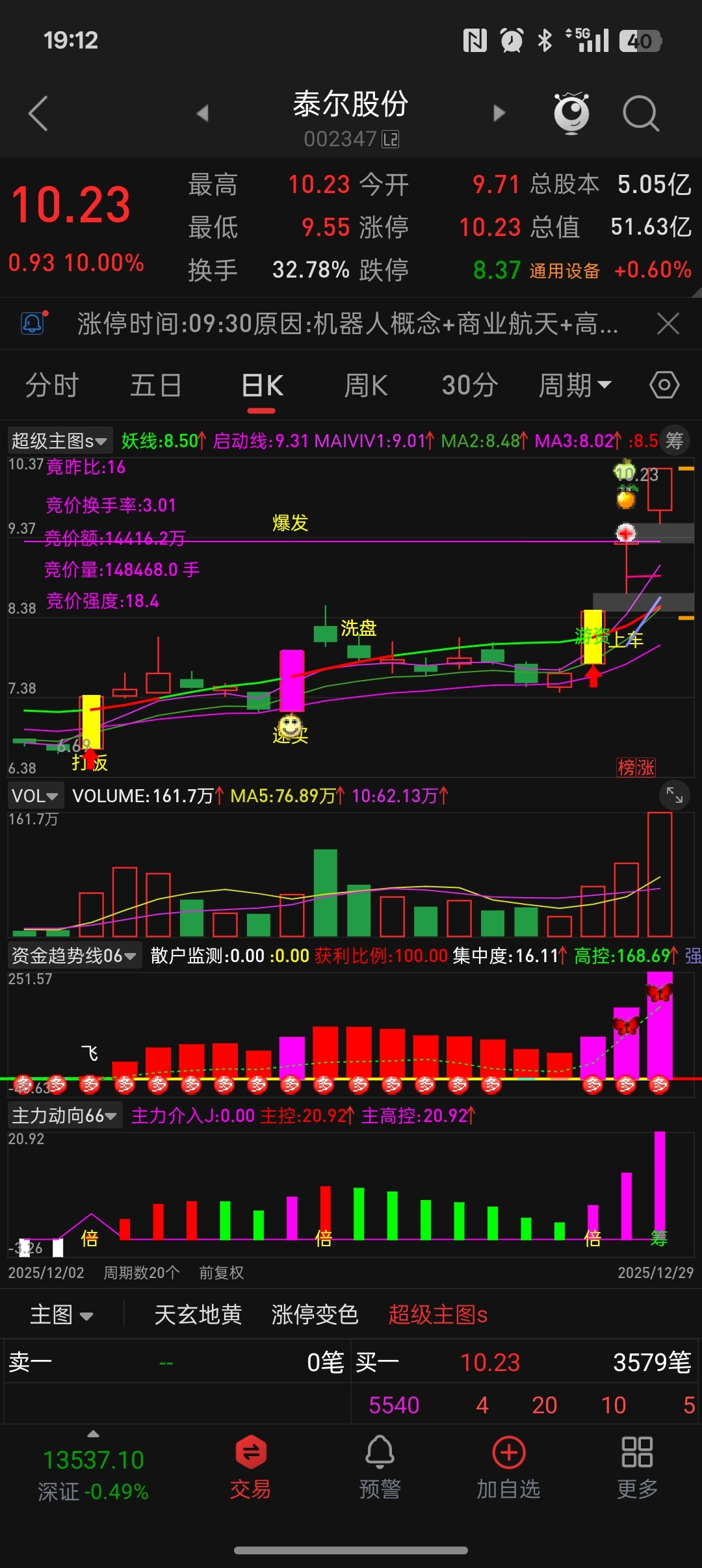 $泰尔股份(SZ002347)$ 以后过了紫线就上,好多都是上了紫色线一路飙升