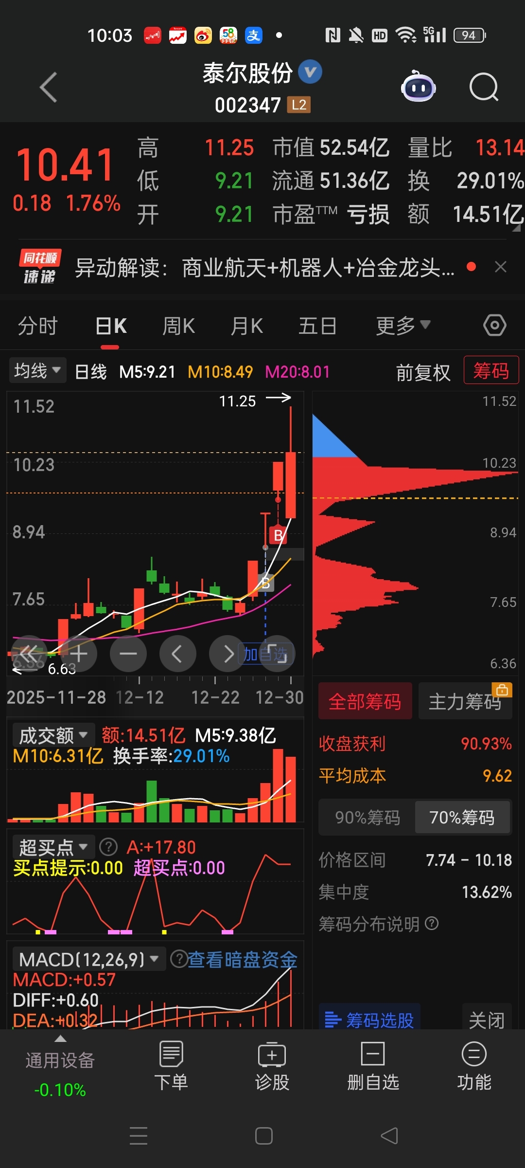 $泰尔股份(SZ002347)$ 都别笑话我真的,我真的看好他鉴定不移的格局到下午2.55走只要没涨停,地板我也走,别说我是说书的