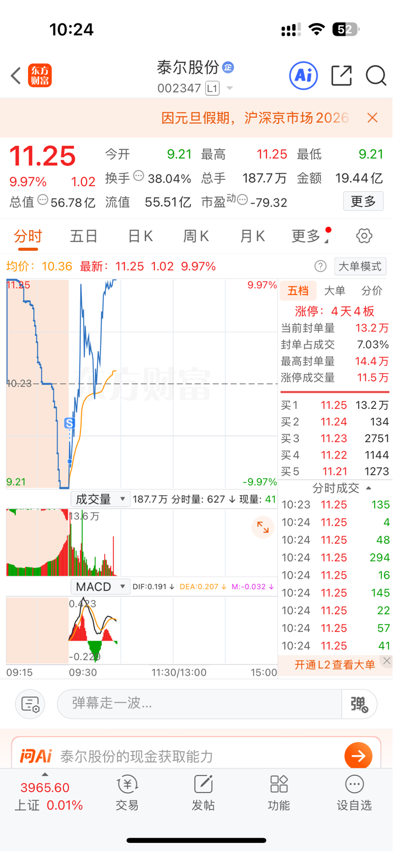 $泰尔股份(SZ002347)$ 坚持不下去了,各位鼓励我一下吧