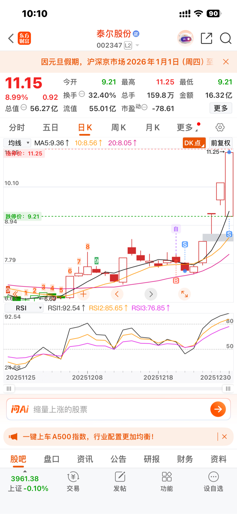 $泰尔股份(SZ002347)$ 我吃4板出了,不贪心,谢谢主力,