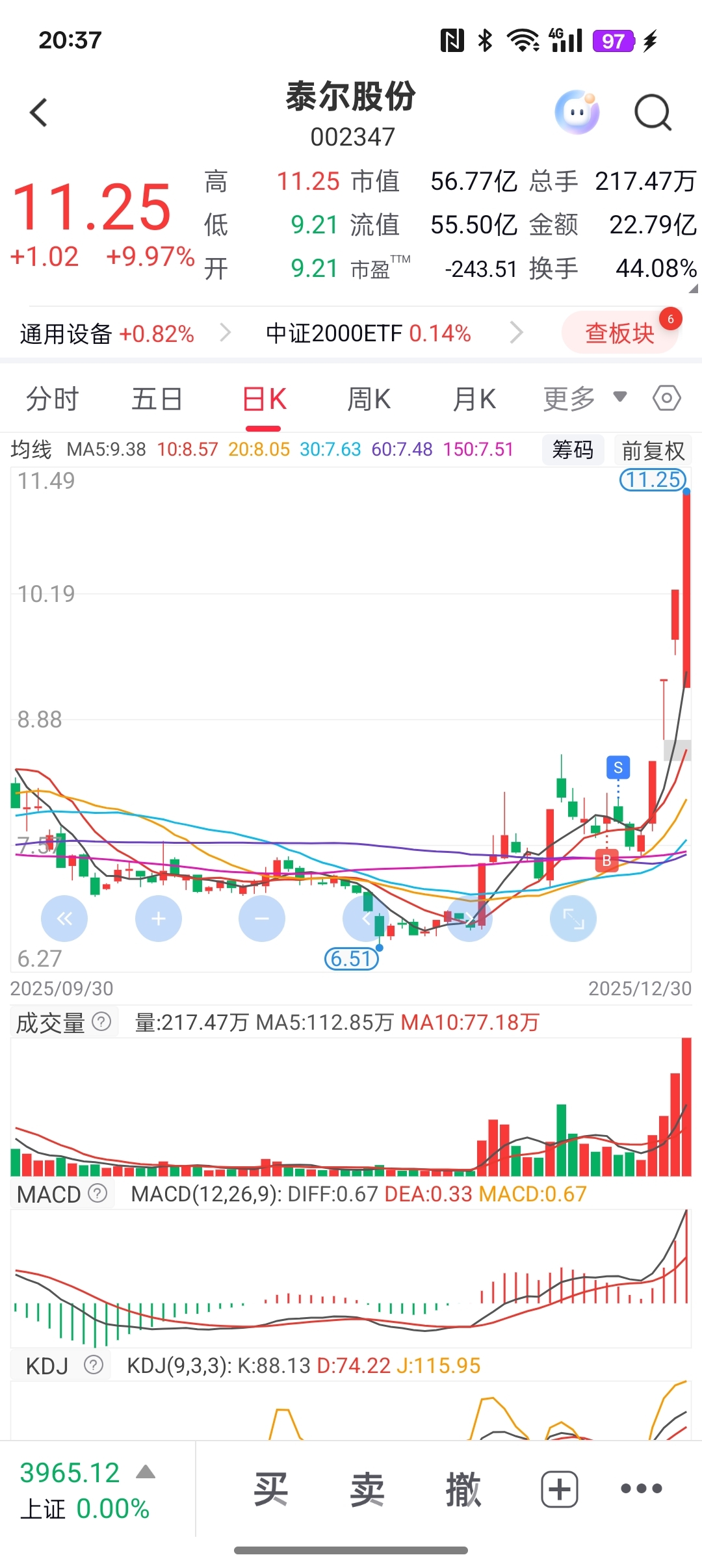 $泰尔股份(SZ002347)$ 给大家晒晒我的神操作