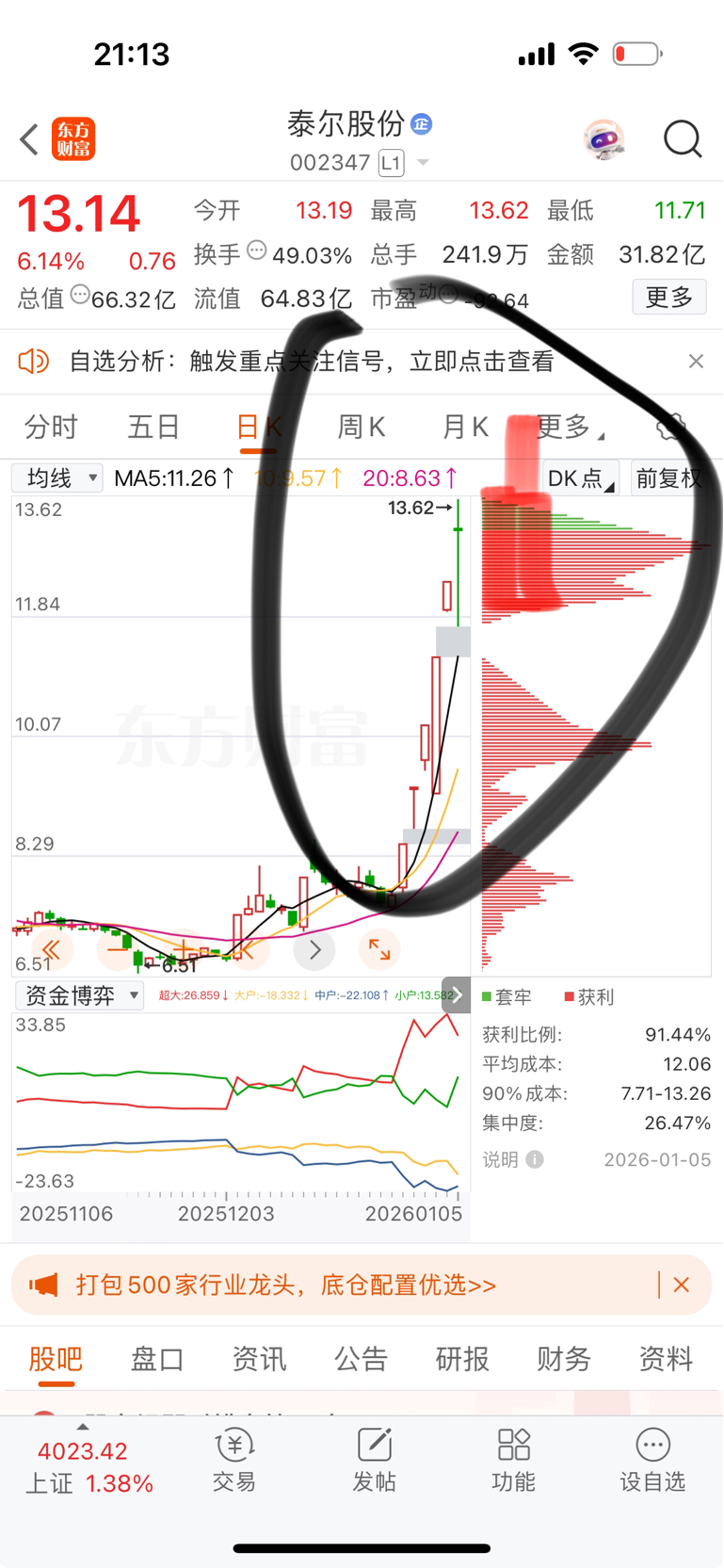$泰尔股份(SZ002347)$ 明天结束会是这样的图形