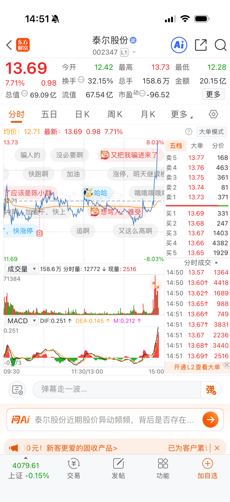 $泰尔股份(SZ002347)$ 哭死 我买了我账户里最后1000块钱 甚至不是1000股