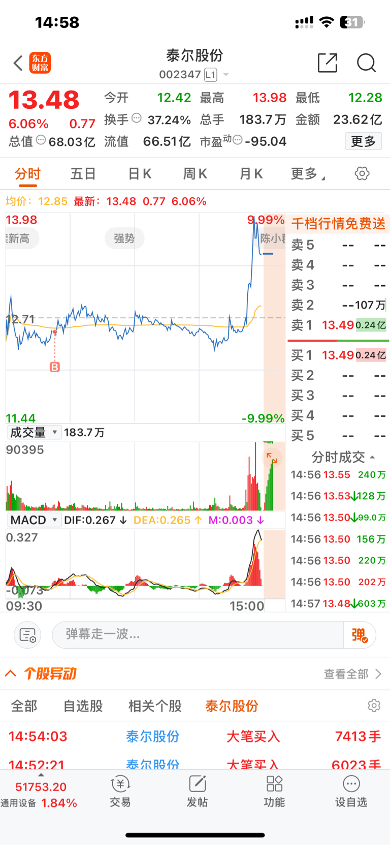 $泰尔股份(SZ002347)$ 明天要杀猪吗