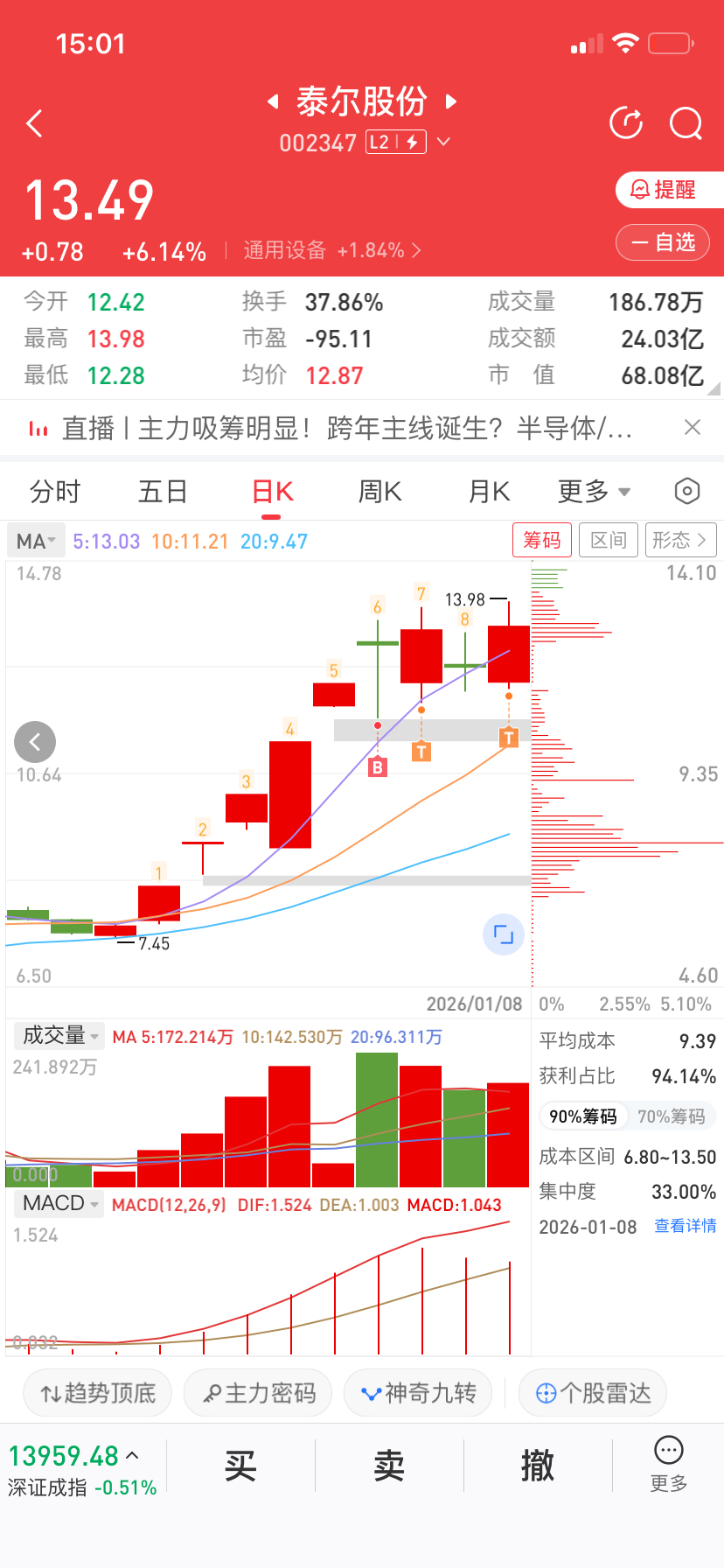 $泰尔股份(SZ002347)$ 对不起啊,我一个小股东不会是我做T的缘故让你疯癫吧