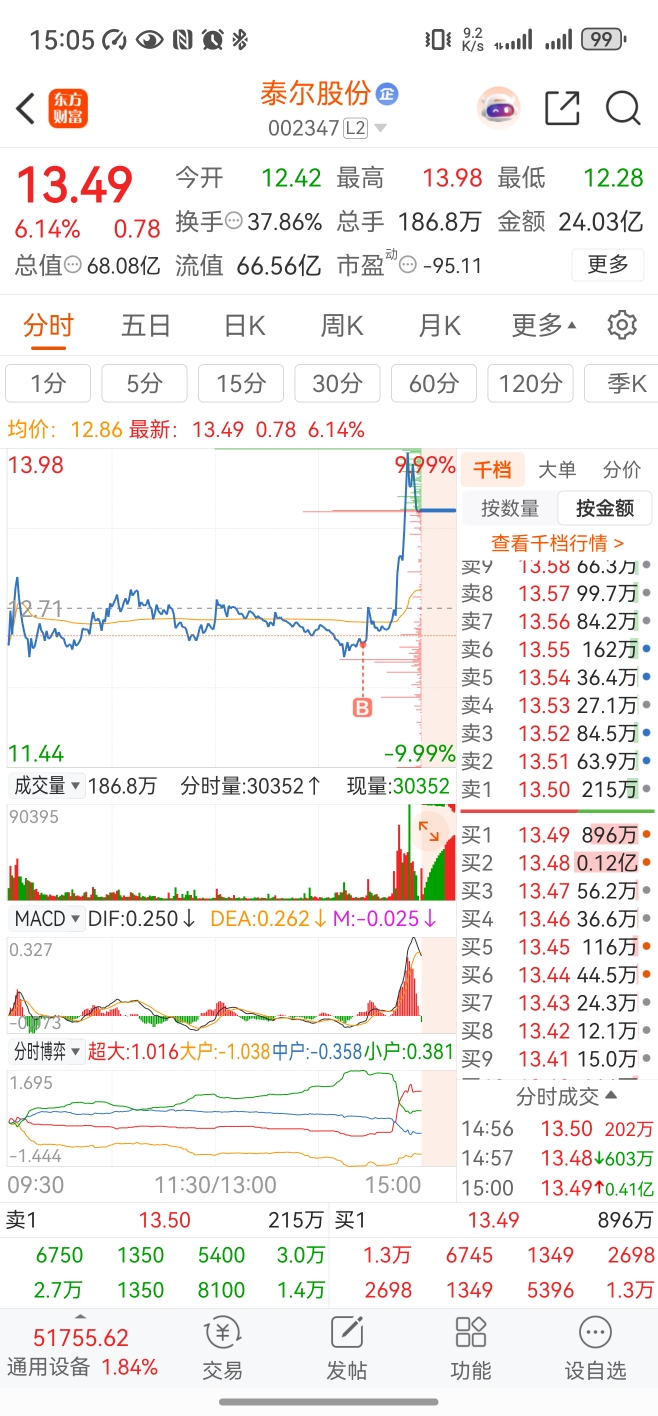 $泰尔股份(SZ002347)$ 12.42补了点泰尔股份,早盘还补了航天电器,今天操作达标