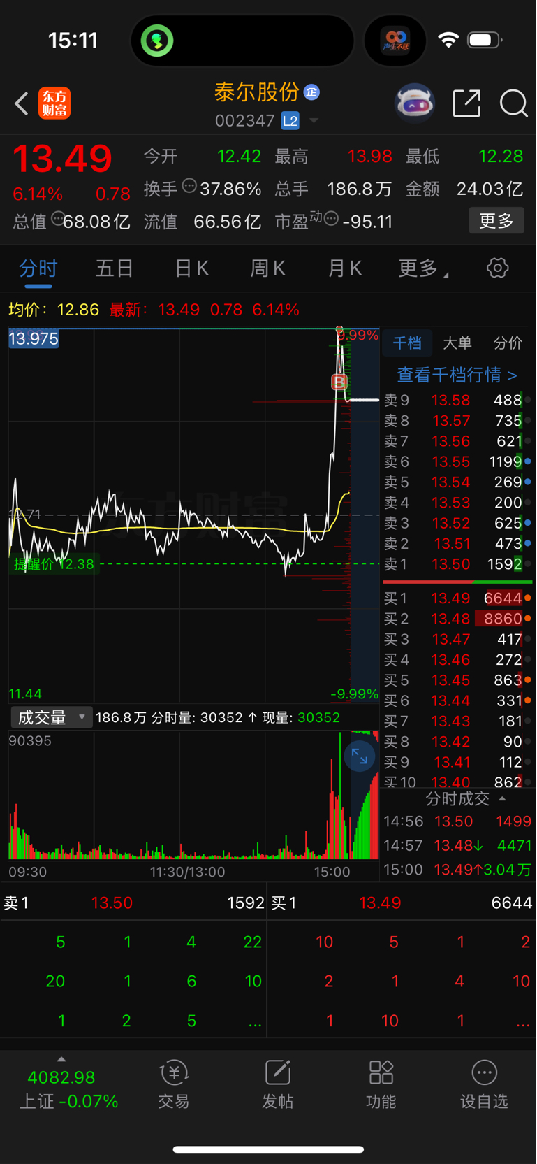 $泰尔股份(SZ002347)$ 明天能出来吗?都怪我买了 影响你们涨停了 给大哥大姐们道歉