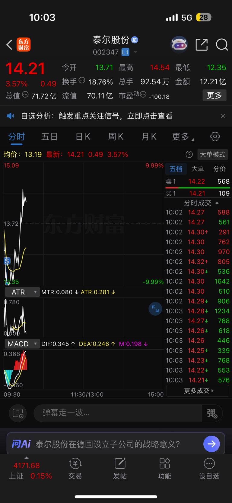 $泰尔股份(SZ002347)$ 就缺我这点嘛