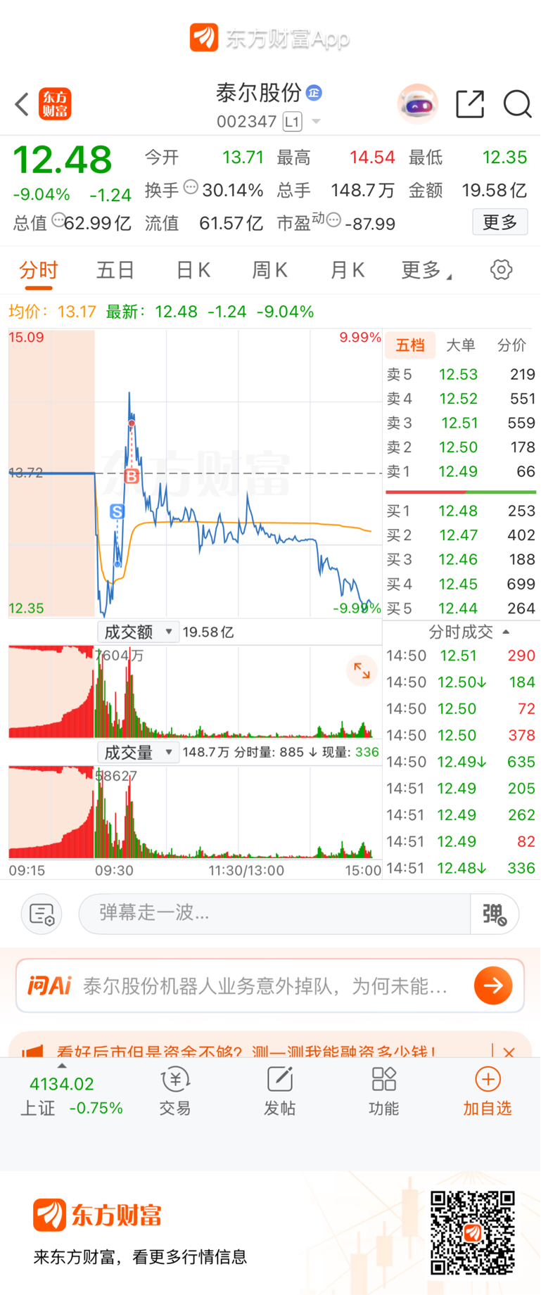 $泰尔股份(SZ002347)$ 谢谢主力教我做人,我错了,钱我已经送到了,明天让我走吧,以后我见到你,我给你磕头