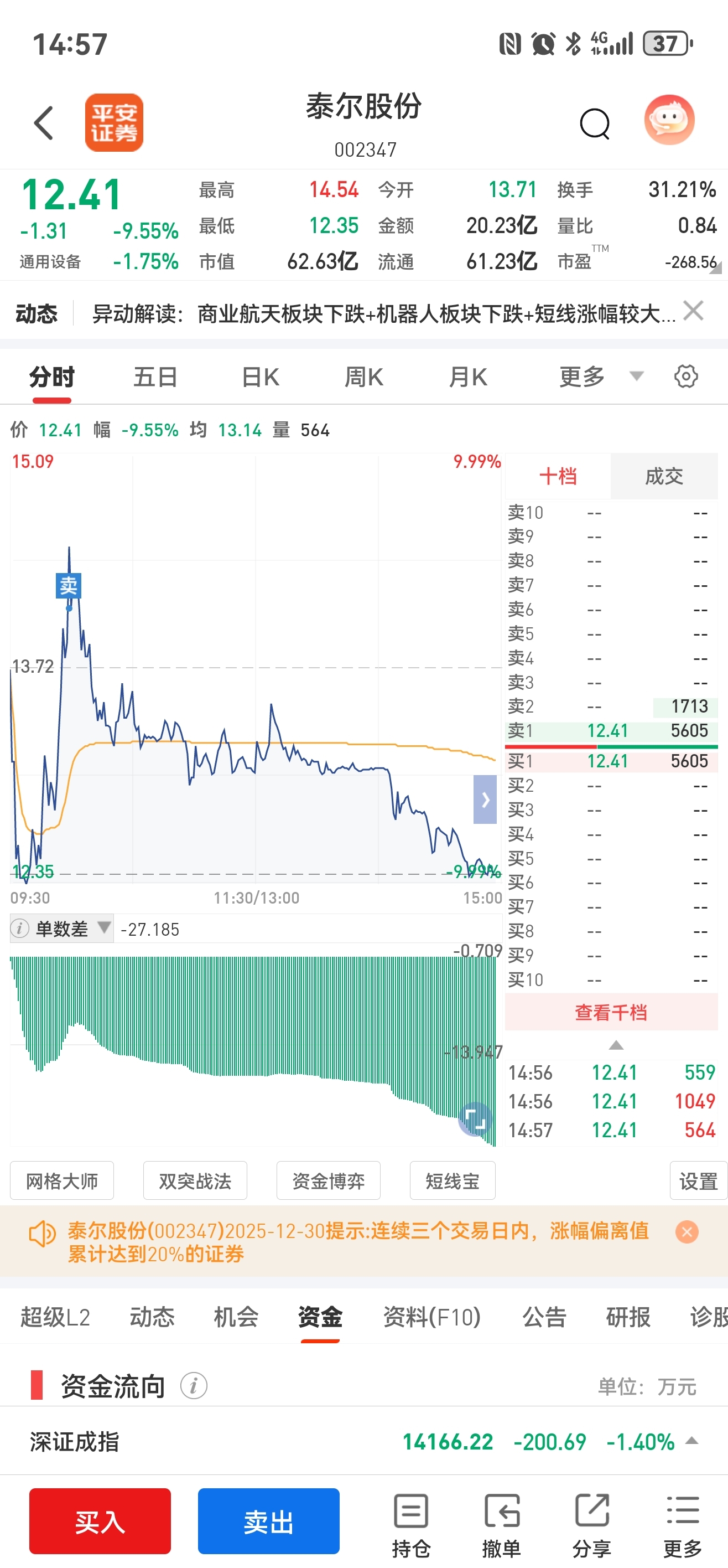 $泰尔股份(SZ002347)$ 逃顶地天地,