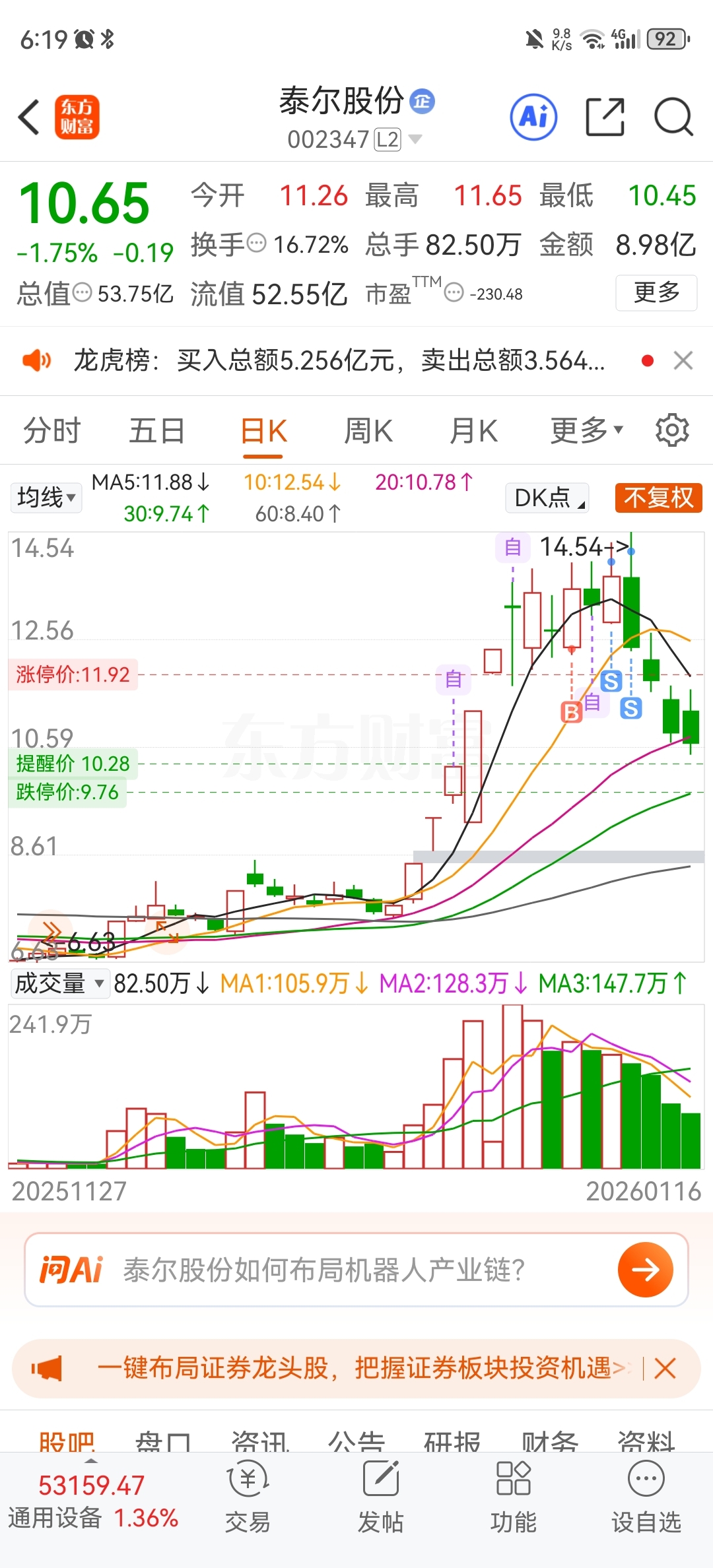 $泰尔股份(SZ002347)$ 卖了泰尔进了这货,今天出来了,最近行情不稳,周一下午尾盘在看吧!