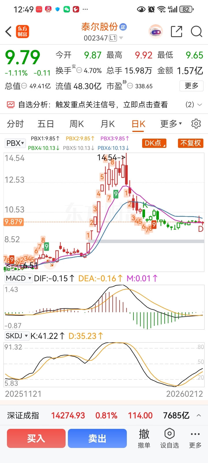 $泰尔股份(SZ002347)$ 侦察兵,9879。