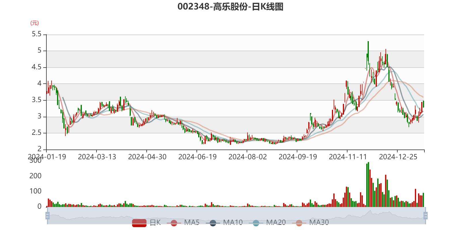 中证智能财讯高乐股份(002348)1月19日晚间披露2024年度业绩预告,预计2024年实现营业收入3.1亿元至3.4亿元,同比增长16.37%-27.63%;归母净利润亏损3600万元至6500万元,上年同期亏损6197.85万元;扣非净利润亏损3400万元至6600万元,上年同期亏损6336.26万元;基本每股收益-0.038元/股至-0.0686元/股。以1月17日收盘价计算,高乐股份目前市盈率(TTM)约为-47.94倍至-86.56倍,市净率(LF)约6.5倍,市销率(TTM)约9.59倍。