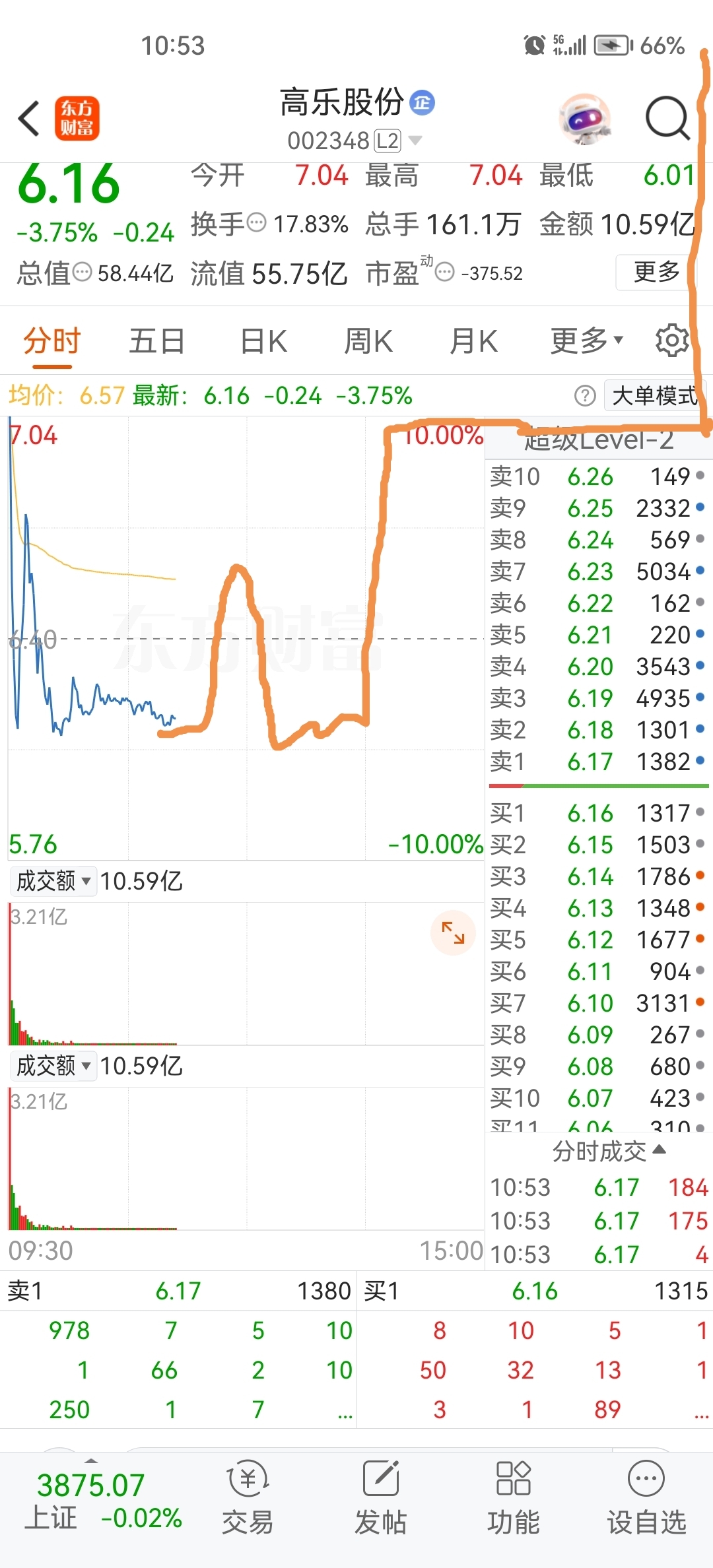 $高乐股份(SZ002348)$ 今天和周一的走势,跟我一样的拉萨韭菜们,我只能言尽于此了