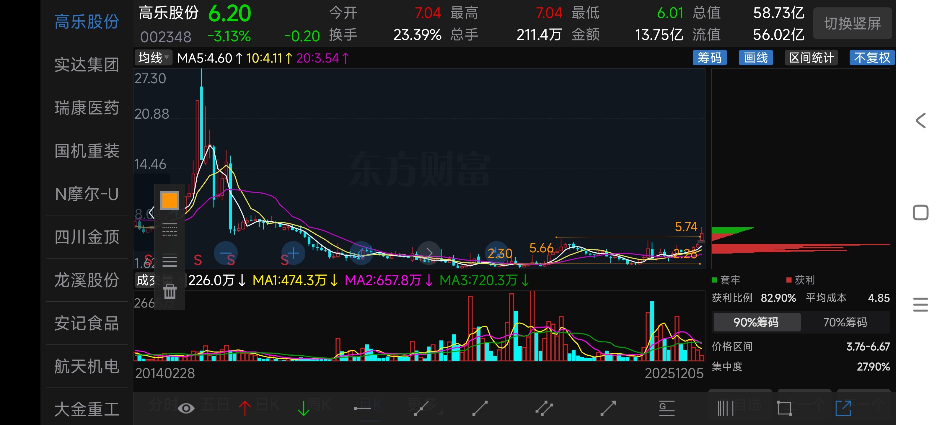 $高乐股份(SZ002348)$ 如图,突破箱体,开启了新一轮的上涨,按这个突破测算,下一个目标位是9元