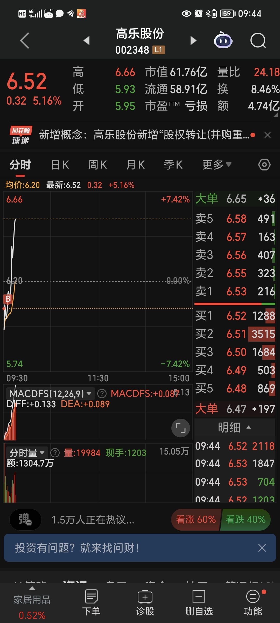 $高乐股份(SZ002348)$ 能红就满足