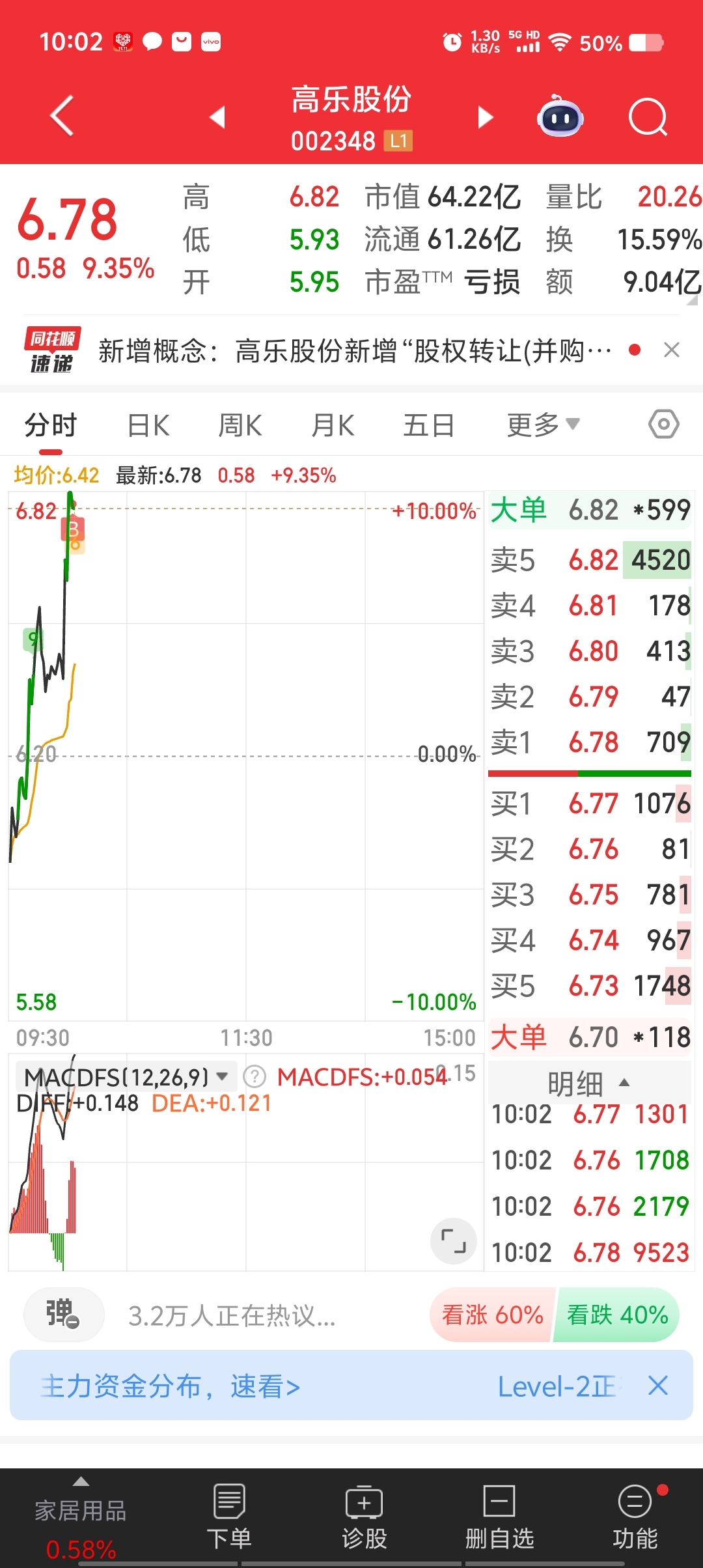 $高乐股份(SZ002348)$ 兄弟们不好意思我给买崩盘了