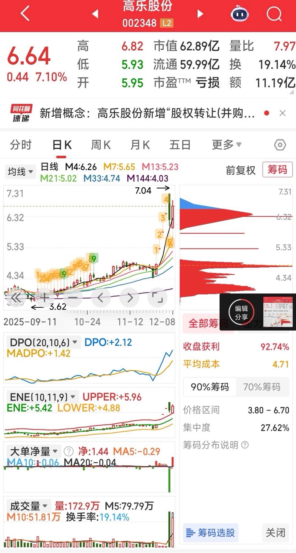 结论:高乐股份的周五操作完全是大佬之间的博弈,买者卖者都是通道高手,因此,从涨停买进者看,下周必会自救再起风云。