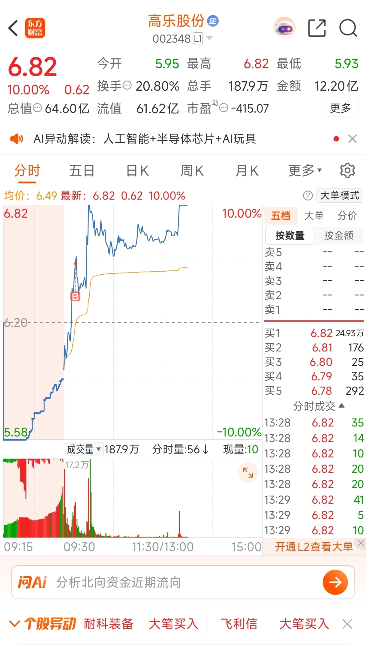 $高乐股份(SZ002348)$ 反包饺子,干就完事了