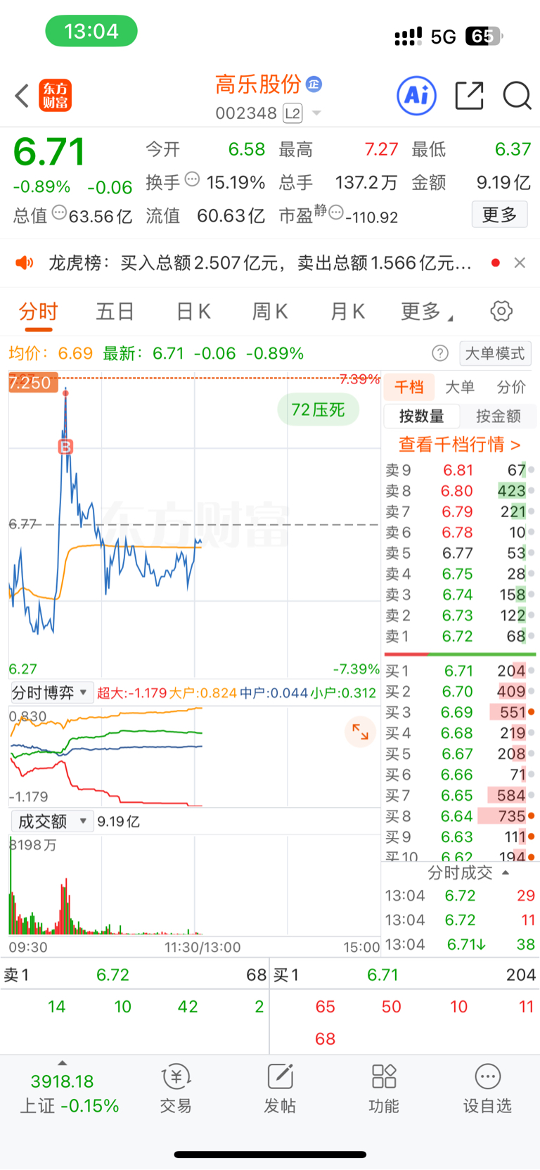 $高乐股份(SZ002348)$ 兄弟们不好意思,我买一手给我买崩了