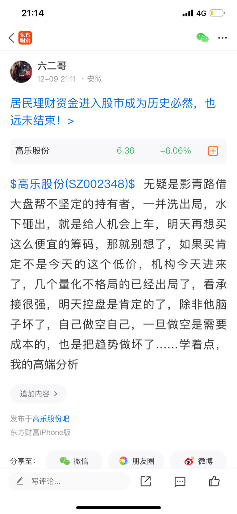 温馨提示: 1.根据《证券法》规定,禁止编造、传播虚假信息或者误导性信息,扰乱证券市场;2.用户在本社区发表的所有资料、言论等仅代表个人观点,与本网站立场无关,不对您构成任何投资建议。用户应基于自己的独立判断,自行决定证券投资并承担相应风险。《东方财富社区管理规定》