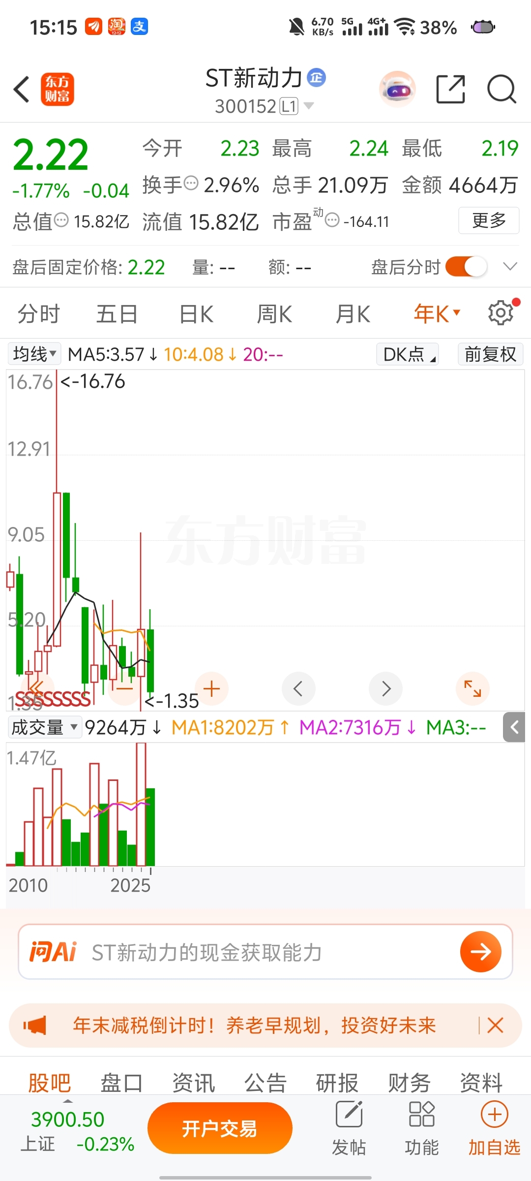 大家说说像不像st新动力,一模一样都是连续亏损好几年,估计这个月做个长上影线k线