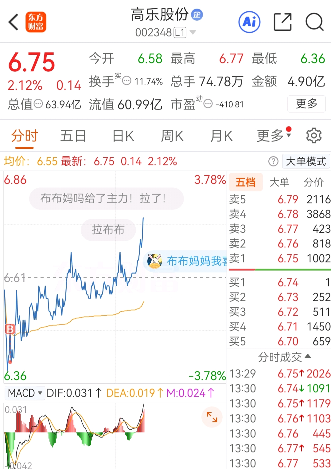$高乐股份(SZ002348)$ 今天水下-3加了两成仓,能成功再T波大肉肉不?