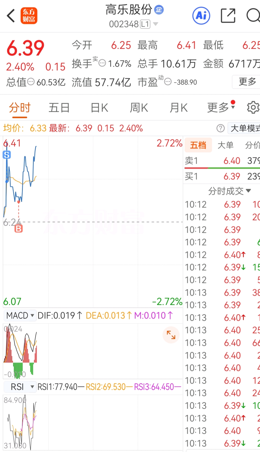 $高乐股份(SZ002348)$ 这不算卖飞吧,兄弟们!早盘挂3毛2,没想到小乐今天那么给力居然卖出去了