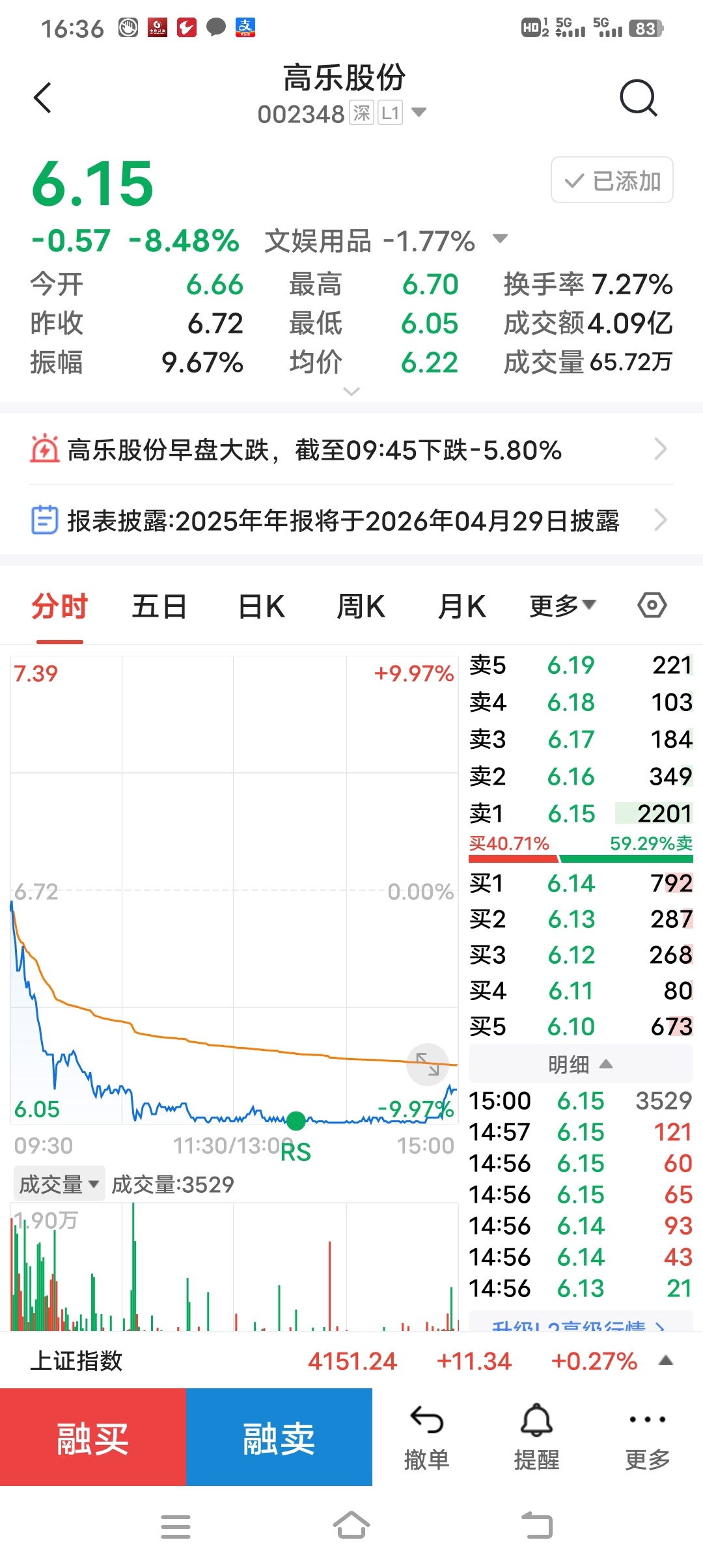 $高乐股份(SZ002348)$ 无可奈何花落去。跌停价也要卖呀!