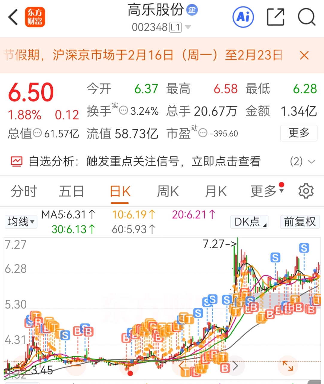 $高乐股份(SZ002348)$ 有幸今年能陪伴两支好票走过一年,不仅填补了其他亏损股,还能有所收益。