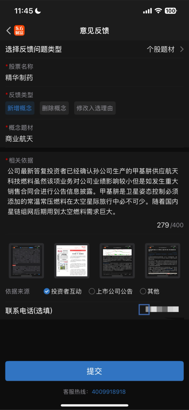 大家一起参与维护啊添加商业航天概念。首页+号里意见建议增加商业航天。公司最新答复
