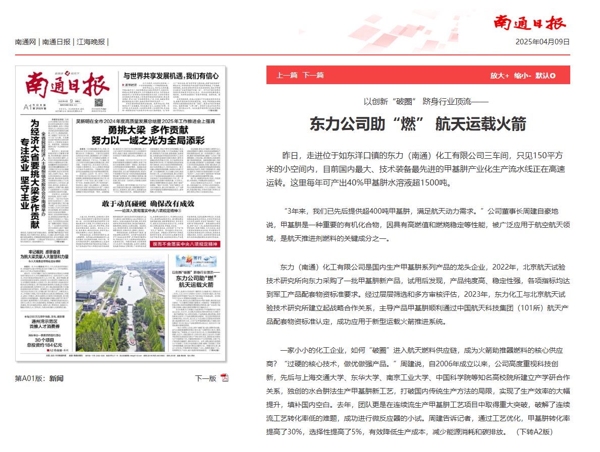 公司最新答复投资者已经确认孙公司生产的甲基肼有供应航天科技燃料,虽然该项业务对公司业绩影响较小但是如发生重大销售合同会进行公告信息披露。甲基肼是卫星姿态控制必须添加的常温常压燃料在太空星际旅行中必不可少。随着国内星链组网后期用到太空燃料需求巨大。国家已经向国际电信机构申请二十万颗卫星。