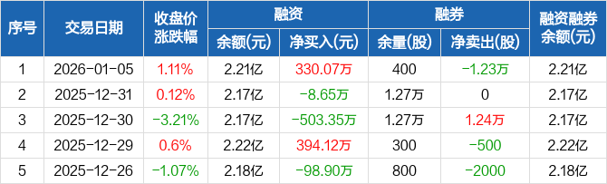北京科锐:融资净买入330.07万元,融资余额2.21亿元(01-05)