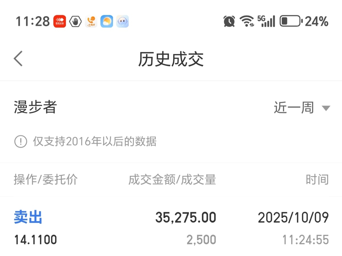 上周五卖剩的2500股。算了。不等了。也感谢主力。在这个股上赚到钱了。