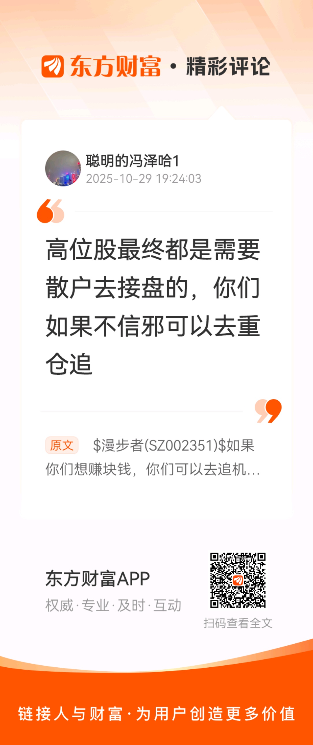 $漫步者(SZ002351)$ 如果你们想赚块钱,你们可以去追机构抱团的方向,工业富联,和立讯精密,这些龙头个股,涨幅大,下跌也快,如果你跟不上机构的节奏,你们也一样被反复收割