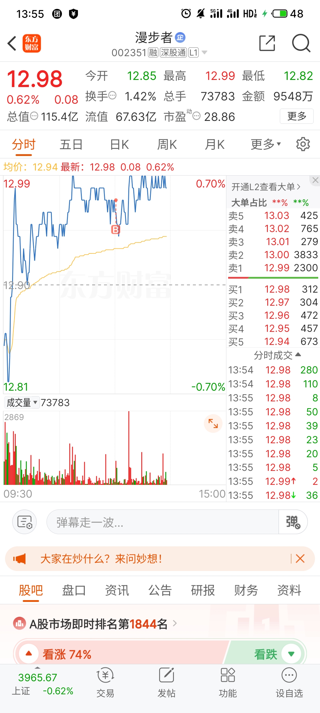 $漫步者(SZ002351)$ 12.99是最后的机会黄金坑,钻石底。此时,此刻,此地,此股。知行合一老师再次坚定加仓漫步者