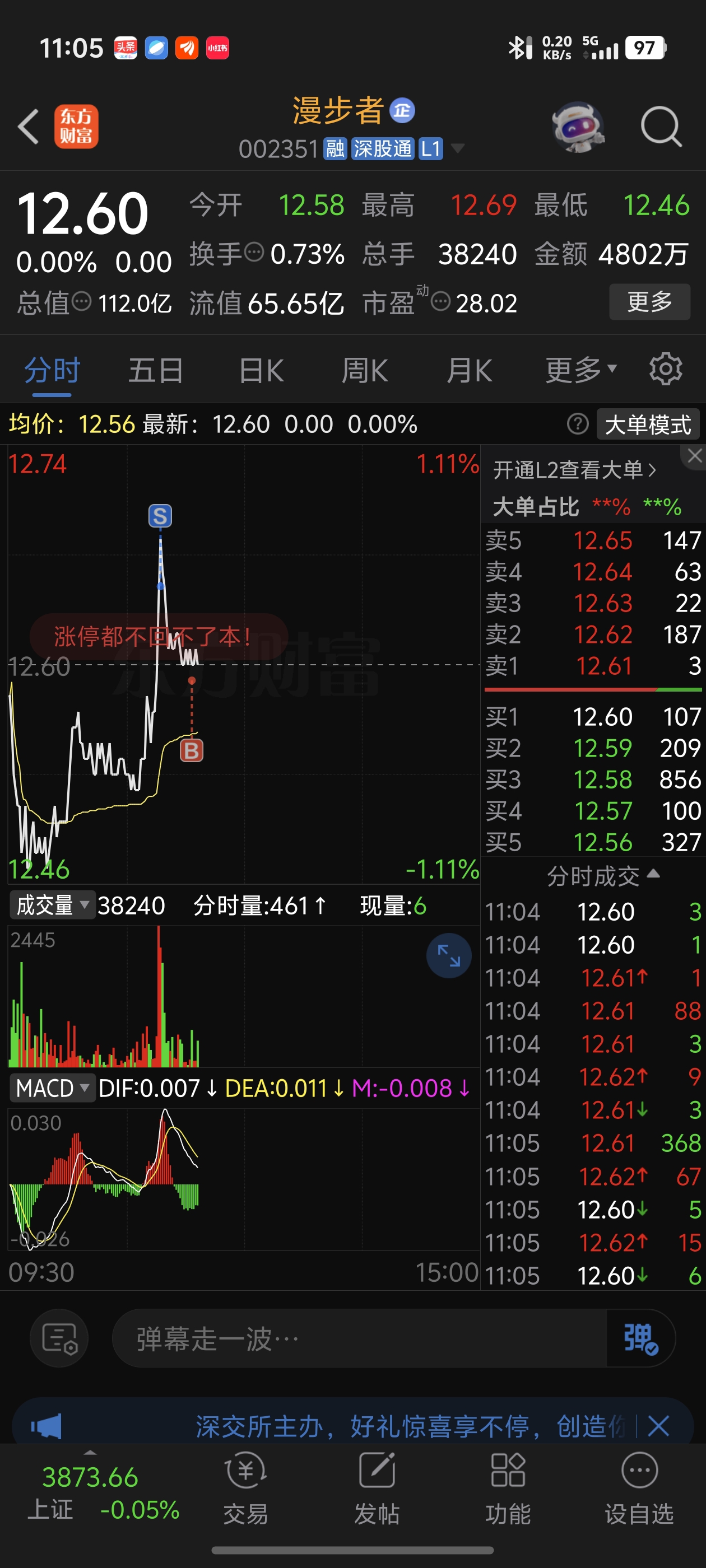 $漫步者(SZ002351)$ 我是怎么在12.59买到的,当时股价更本没下来,不吉祥的预感啊,卧槽!