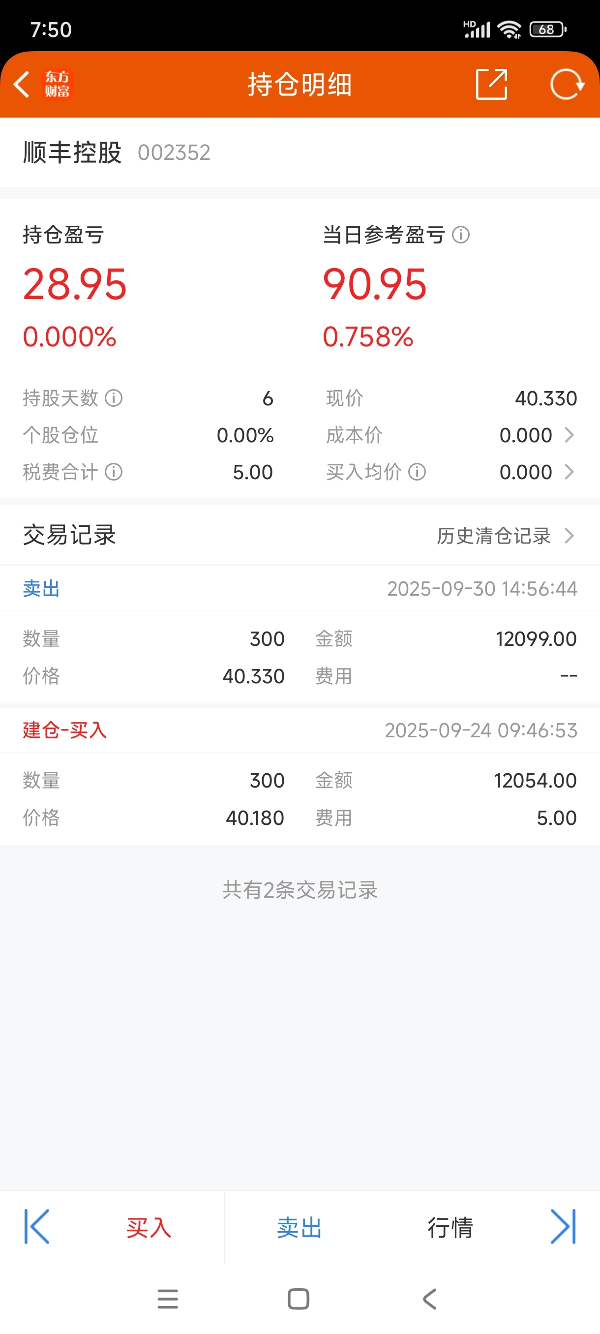 $顺丰控股(SZ002352)$ 挣了个早餐钱跑了