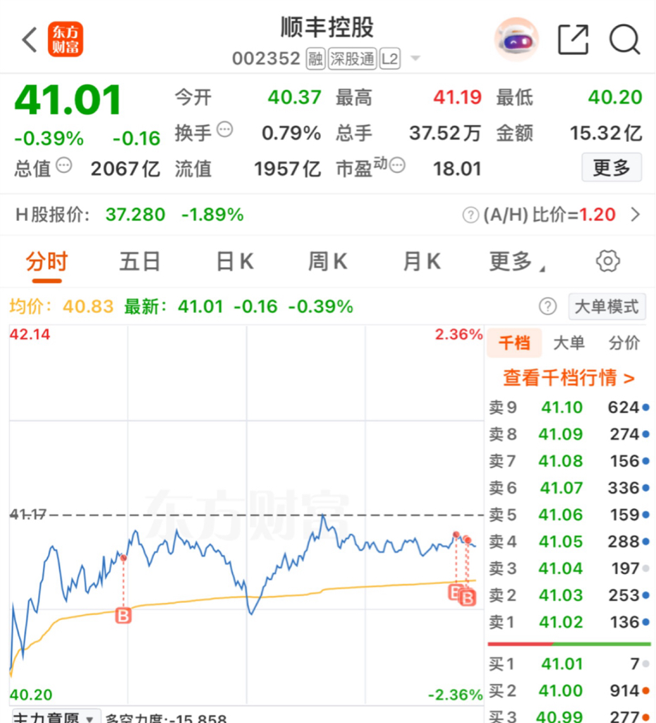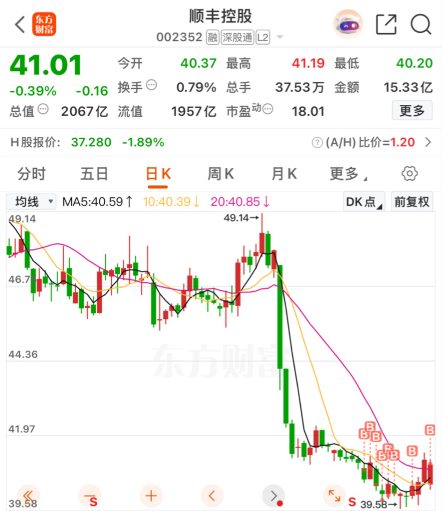 今天继续买入3000股顺丰!周围有人问我,下跌趋势,为啥不等38,35再买,现在