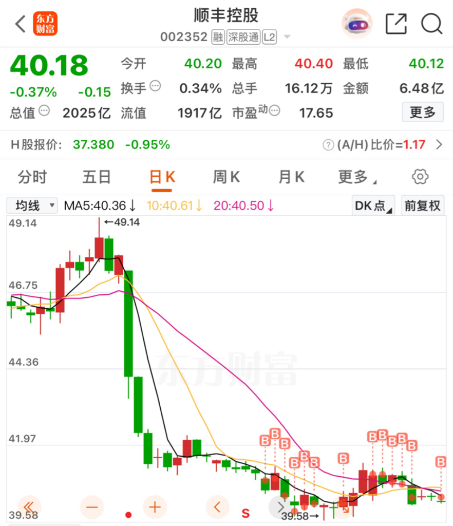 今日继续定投买入顺丰!有闲钱的闭眼买入,投资是概率游戏,短期是涨是跌,不可预料!