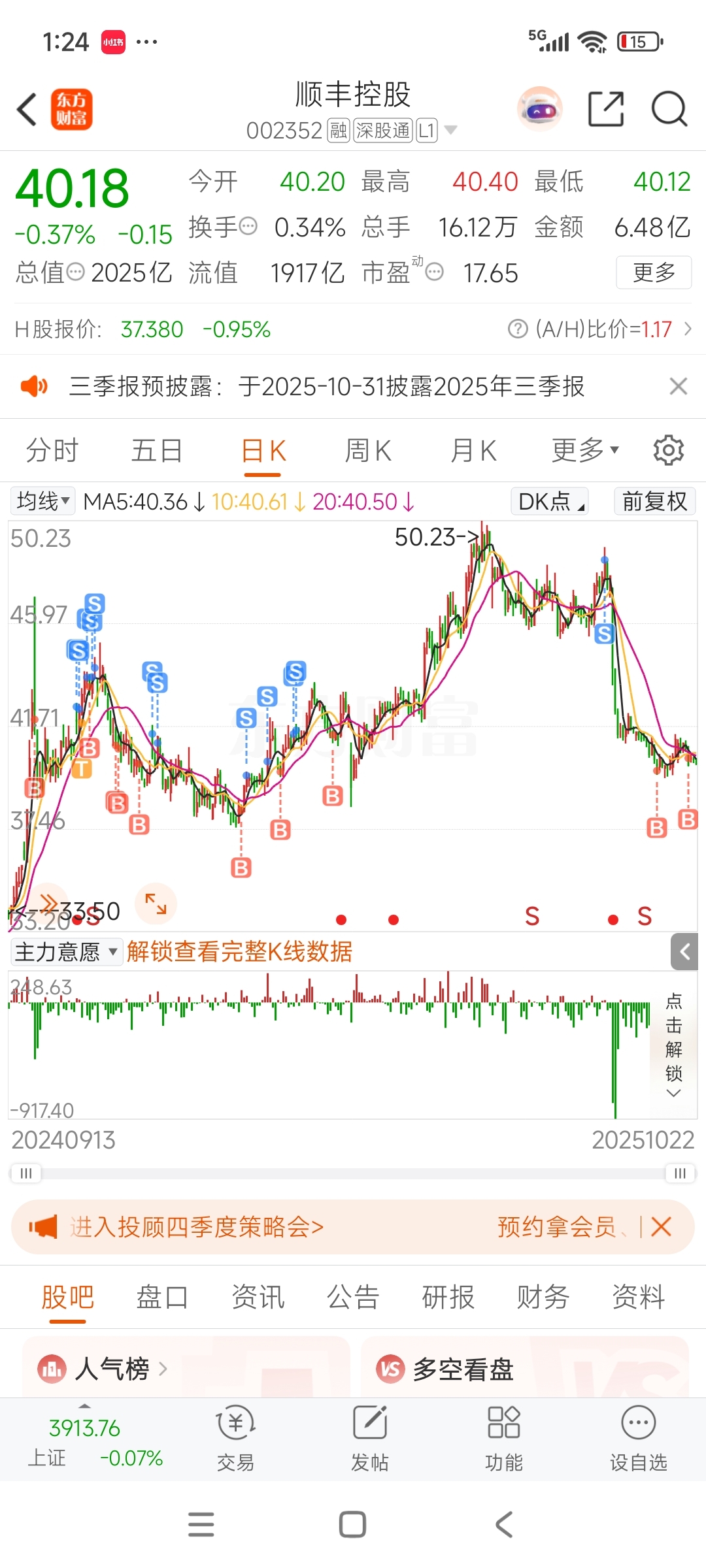 随着机器人技术的普及,无人送货如果成熟,净利润会大增,未来顺丰还是很有可期的,长线的话看60以上,短期可以高抛低吸。